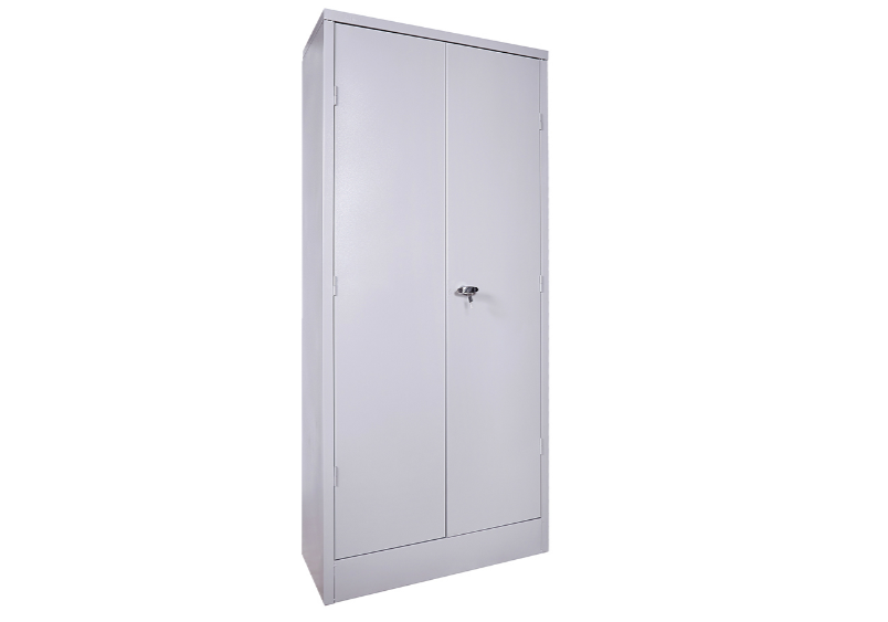Armário de Aço com 02 (duas) portas de abrir e 04 (quatro) prateleiras mais a base, formando 05 (cinco) níveis para acomodação de materiais e objetos. Possui cremalheira para ajuste das prateleiras, maçaneta com duas chaves com fechamento com varetas. Ideal para escritórios, almoxarifados, empresas e pode ser usado em residências também.