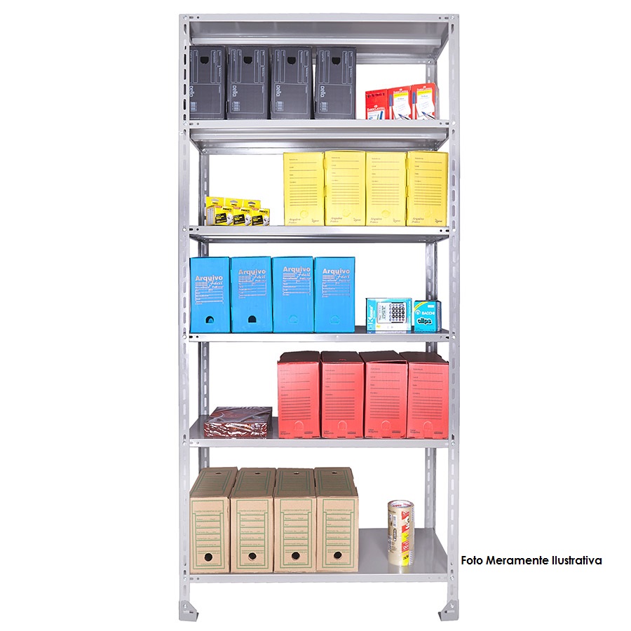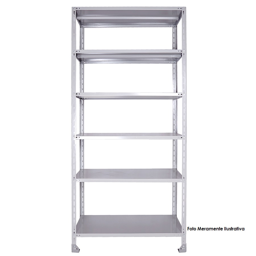 Produzido em Aço 1008 "CERTIFICADO" de alta qualidade com tratamento anti-ferruginoso, contém 06 prateleiras com dobra dupla em "CHAPA 22" (0,75mm) com reforço Ômega resistente a 100kg distribuidos por prateleira e 04 colunas L3 em CHAPA 16 (1,50mm) permitindo que você regule as prateleiras na altura conforme sua necessidade. O acabamento em sistema de pintura eletrostática a pó (epóxi) em alta temperatura garante maior durabilidade do produto e resistência ao tempo e ferrugem, acompanhando um kit com 48 parafusos e 48 porcas chave 11 (08 por prateleira).