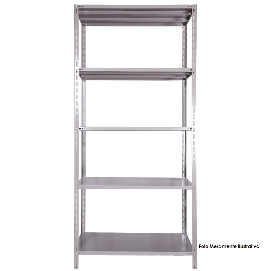 Produzido em Aço 1008 "CERTIFICADO" de alta qualidade com tratamento anti-ferruginoso, contém 05 prateleiras com dobra dupla em "CHAPA 22" (0,75mm) com 02 reforços Ômega resistente a60kg distribuidos por prateleira e 04 colunas L2 em "CHAPA 18" (1,20mm) permitindo que você regule as prateleiras na altura conforme sua necessidade. O acabamento em sistema de pintura eletrostática a pó (epóxi) em alta temperatura garante maior durabilidade do produto e resistência ao tempo e ferrugem, acompanhando um kit com 40 parafusos e 40 porcas chave 11 (08 por prateleira).