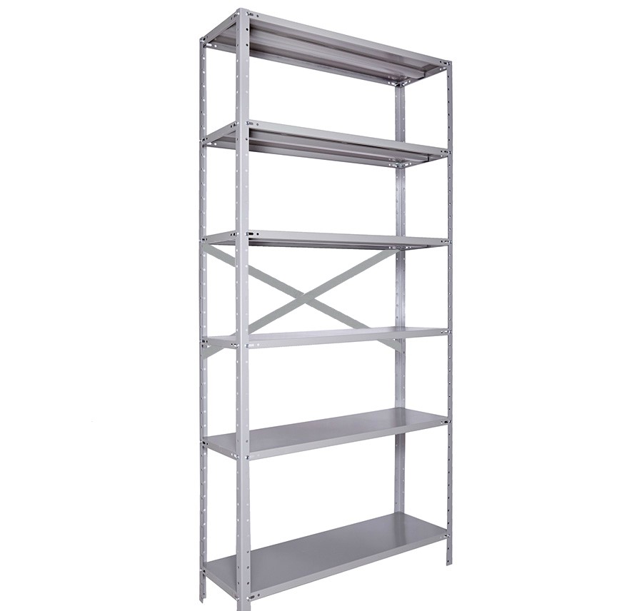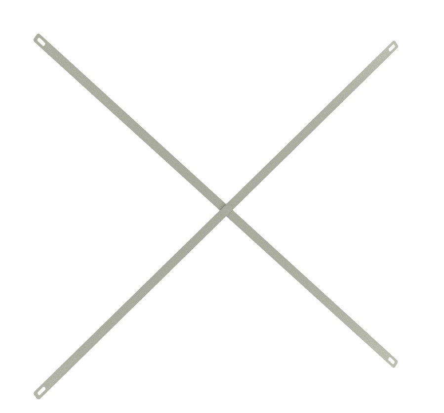 Hastes para reforço em “X” de fundo de estantes com 92 centímetros de largura, produzido em “CHAPA 18” (1,20mm) cor cinza.